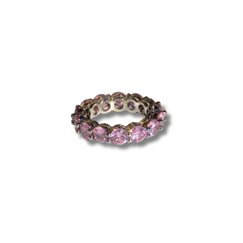 A symbol of eternal love: a genuine sterling silver band with 925 silver plating. Adorned with 3mm round AAA-quality pink cubic zirconia stones.