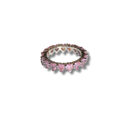 Give a gift from the heart with this gorgeous openwork ring, the perfect way to express your love. Exquisitely crafted in sterling silver, this delicate style features a band of pink AAA-quality hand-finished hearts and delicate bead detailing. The romantic design looks equally beautiful worn on its own or layered with contrasting rings.